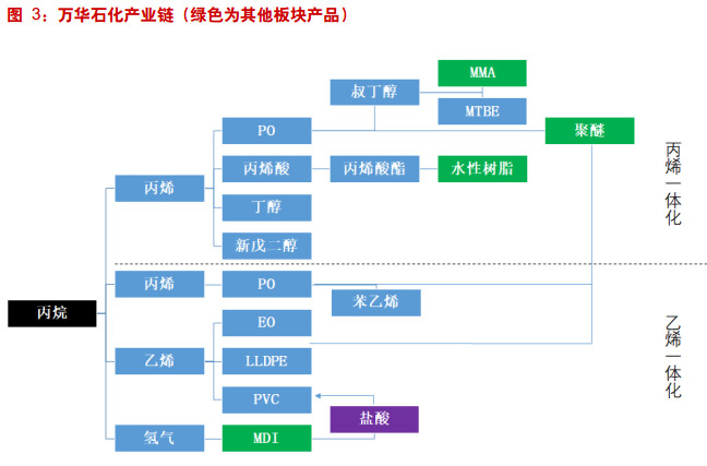 万华化学按产品类别分成三部分业务: