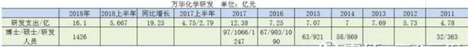 从最初的MDI制造业拓展到聚氨酯、石化、精细化学品及新材料。不断延伸上下游。对同行形成成本优势,未来将拓展尼龙12及柠檬醛产业化。2018年万华化学研发达到了16亿元,近5年研发投入达到50亿元。