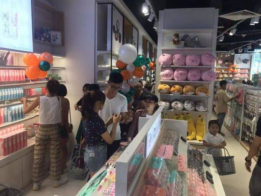 比如一家“来自韩国”的品牌“MUMUSO”则展示了和来自东京的MINISO非常不一样的面孔,各种色彩粉嫩、设计清新的小物一秒钟把你带回首尔,店里的卡通形象木木family显然成为越南人民心中的布朗熊和可妮兔。
