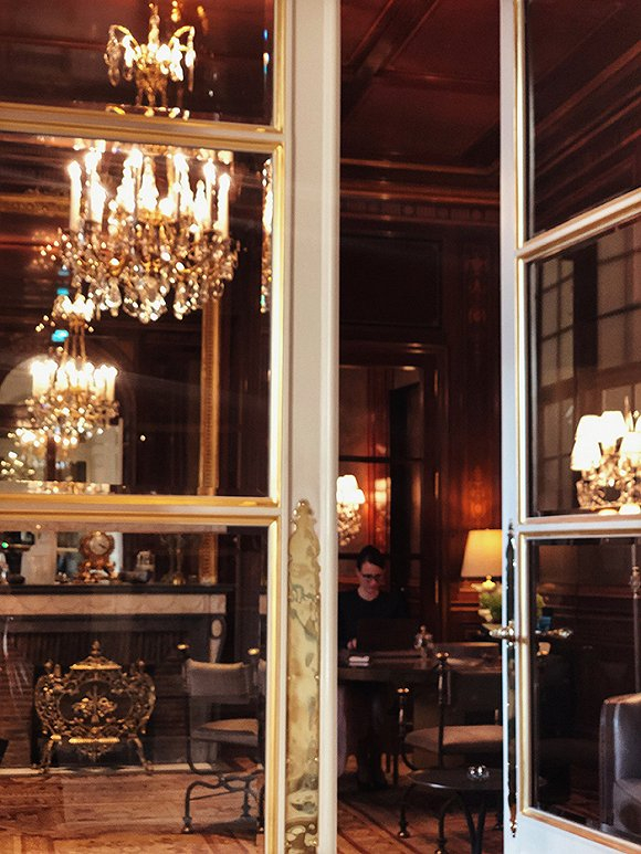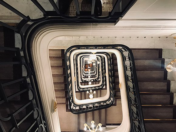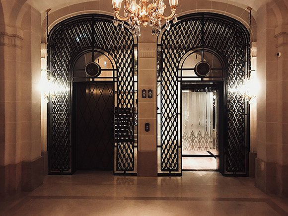 相比建筑的恢弘,酒店的入口显得格外低调,但至少有三到四名保安和门童将你迎入酒店。巴黎瑰丽是长廊式大堂,入口左侧是独立办理入住的Check-in房间。这里作为会客厅的功能,同时也将酒店宫殿华丽的部分展现给了住客。四散而开各类酒店历史相关的摆件和图片诉说着历史,管家在与你闲聊时不紧不慢的完成登记。长廊左侧有开放式的 Concierge 区域,右边则是几家餐厅,一通到底。永远有电梯在一楼等待这点印象很不错,服务员会在不同区域互相交接住客的行李。管家送入房后也详细介绍了房内的设施以及亮点。
