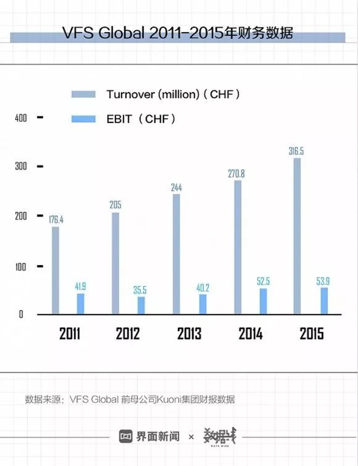 签证中心,到底赚不赚钱对VFS、BLS等签证服务产业链上游企业来说,签证代办是一门好生意。VFS原母公司Kuoni集团财报显示,2015年VFS Global的营收在集团总营收中占比9.5%,但在息税前利润EBIT中占到66.4%;签证板块在集团其他旅游业务亏损的情况下常年旱涝保收,并持续增长。(注:2016年欧洲领先的PE投资机构EQT收购Kuoni)