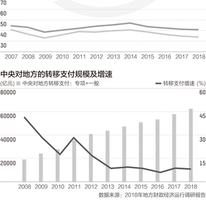 与此同时,自2008年以来,转移支付增速总体呈现下滑趋势。转移支付增量资金主要来自东部发达地区,但近些年尤其是今年受大规模减税降费等因素影响,东部地区财政收入增速放缓明显,转移支付可持续性面临挑战。