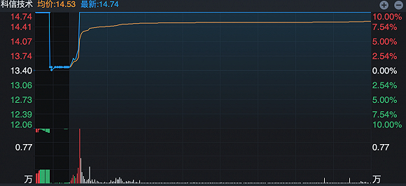 值得注意的是,在当日没有题材概念炒作的板块效应,也没有任何利好消息刺激的情况下,7月31日早间,科信技术股价开盘后不久便涨停封板。上述情况发生在科信技术发布公告之前。
