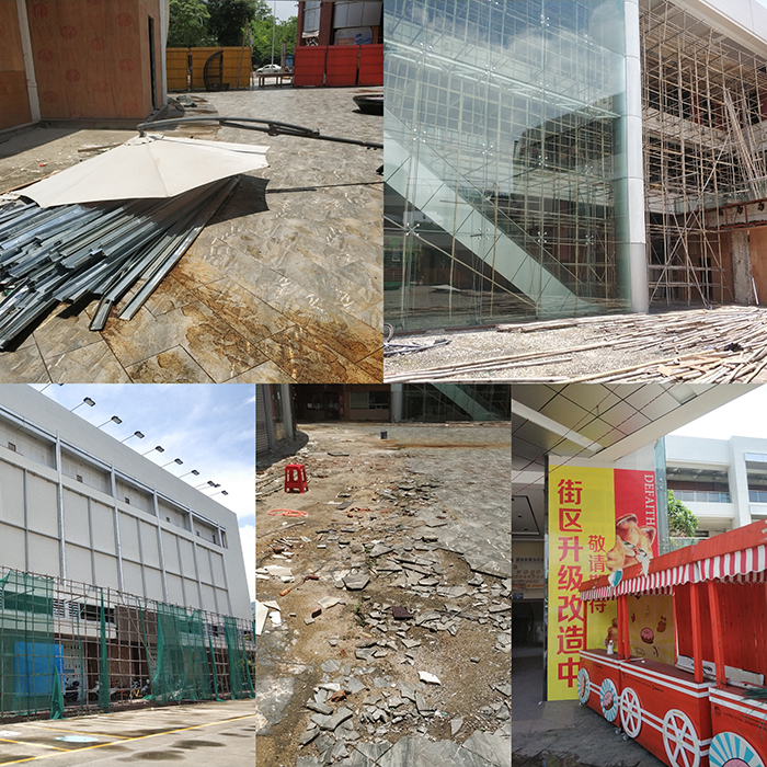 《华夏时报》记者7月24日前往德信新天地商铺所在地查看发现,德信新天地位于中山市石岐区逸仙湖公园、湖滨路东侧,周边人口聚集,商业众多,据业主反映,该地为中山市老城区比较繁荣的地段。德信新天地一侧被绿网围住,好像正在准备施工;商场中间的露天广场上地板已经全部破碎,地上杂乱地放着一些东西,从广场旁进入商场的一扇门往里面看,商场内部还是施工状态,整个商场不见一个人;广场周边的商铺还依稀可见过往经营的场景“五颜六色”餐车、“百度外卖”的广告、“街区升级改造中”的标语……