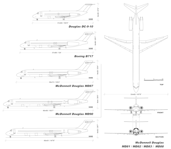MD-80系列客户家族包含MD-80和多种衍生型,如基本量产型的MD-81,高温高原型的MD-82,双发中短程型的MD-83,机身缩短并换装先进引擎的MD-87以及换装当时最先进电子飞行仪表系统等控制系统的MD-88。