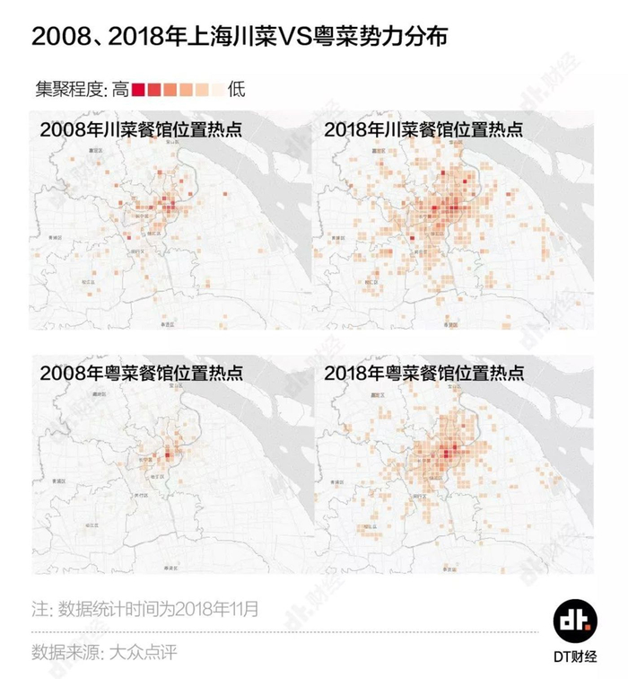 从城市内部观察,可以清晰地看到川菜和粤菜的势力格局与扩张逻辑。