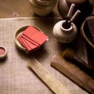 楚国才子宋玉的名篇《神女赋》有这样的描述:“眉联娟以蛾扬兮,朱唇地其若丹”,这里的“丹”即指朱砂,是唇部化妆品的主要原料。