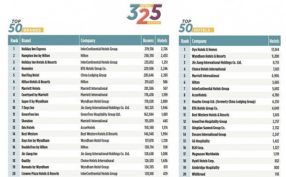 全球酒店集团325强最新榜单:锦江位列第二,OYO挤进8强