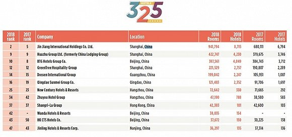 “全球酒店集团325强”排名的数据来自在线调查收集,由酒店公司联系人完成,要求填报酒店截至2018年12月31日,整体运营的客房和酒店数量。没有做出回应的公司,将通过公开记录、前几年的数据、行业来源和独立研究,进行估算。