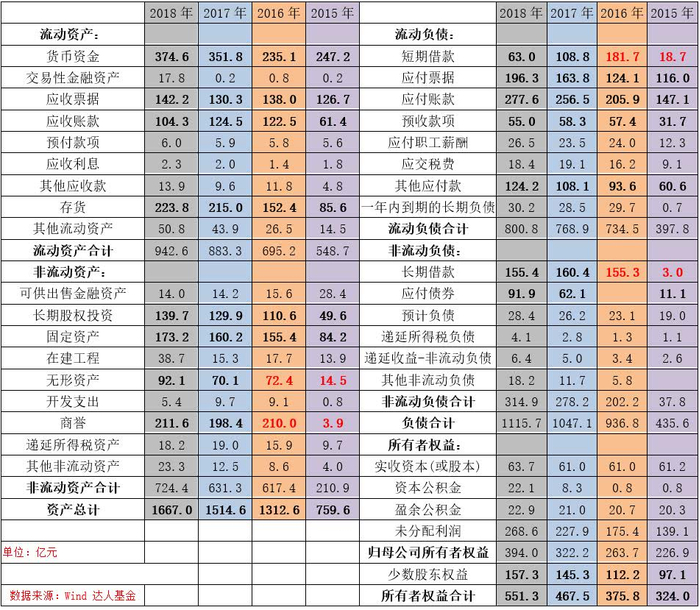 海尔智家在2016年年中完成对通用电气白电的并表,这次收购意义重大,涉及金额较多,所以有必要罗列出公司近四年的资产负债表进行对比。由于采取现金收购,所以2016年公司的有息负债大幅度增加,近200亿的商誉几乎全部是通用白电,并表后公司无形资产增长超过50亿,主要是增加了商标权、特许运营权、软件著作权。2018年公司权益乘数4.44在三大白电企业里是最高的,海尔也是三家企业中唯一一家速动比率低于1的,公司运营有一定风险,但我认为压力不大,良好的现金流使得公司有底气持续还债,近三年公司的有息负债实际上总额在减少,另外公司近期以较低的成本发行60亿可转债,并在德国新发股份,都说明公司融资渠道比较畅通。2018年公司利息费用14.65亿,将公司2017与2018年有息负债相加取均值,可以大致测算出其有息负债的利息成本在4.2%左右,账上超过300亿的资金一年利息收入不足5亿,这可能和集团财务公司有很大关系,这一利息收入实在太低,是公司的一大诟病。公司长期股权投资金额较多且非常杂乱,海尔集团财务、青岛银行等非家电业务,每年为公司提供不少的投资收益。公司存货几乎全部都是库存商品,存货周转天数跟格力、美的相比并没有明显差距。看公司的固定资产与在建工程,海尔智家这两年还在新增产能。用应付票据、应付账款、预付账款表示公司对上游供应商的资源占有,而用应收账款、应收票据、预收账款表示下游客户对公司的资源占有,那么可以看出公司近三年在产业链中的地位稍有强化。海尔智家的少数股东权益主要由海尔电器(港股上市公司)形成,公司对其持股比例只有45%左右。整体而言,2016年对通用白电的现金收购让公司接下来要持续“还债”,短期来看海尔有一定的运营压力,但海尔背景强大,融资手段多,只要保持好并购节奏并妥善经营,风险不算大。总之,海尔的资产负债表比较凌乱,但可以看出公司是在踏实发展、安心“还债”的。