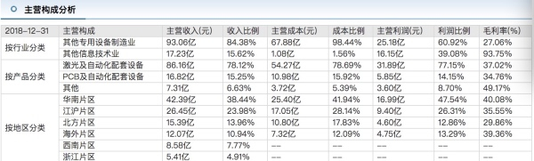 对于业绩下滑的原因,大族激光表示,由于消费电子行业周期性下滑及贸易摩擦引起的部分行业客户资本开支趋向谨慎的影响,公司市场订单较同期有所下降,部分已签约客户推迟提货时间。其中,盈利能力较强的消费电子业务及PCB业务相较去年同期下滑较大;新能源业务增长幅度超过100%,但由于竞争激烈,其毛利率较低;由于产品销售结构及市场竞争加剧的影响,公司综合毛利率较上年同期下降 5%~6 %。