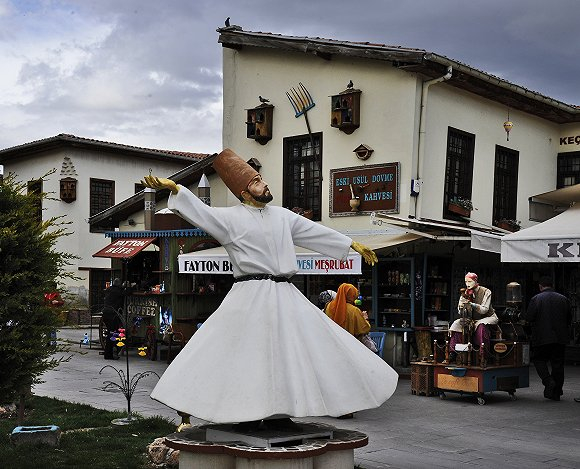 位于土耳其梅夫拉那博物馆门前的“托钵僧旋转舞”雕像  图片来源:视觉中国
