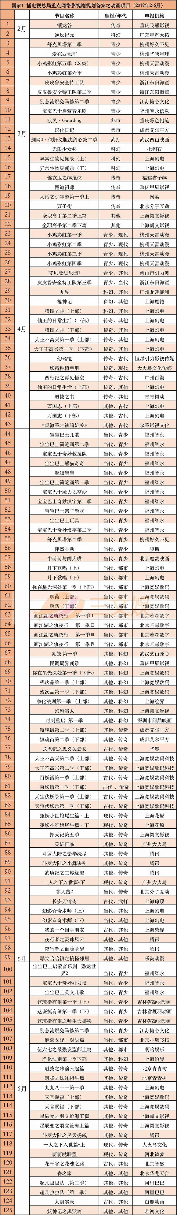 近日,国家广电总局发布了《2019年6月全国重点网络影视剧拍摄规划登记备案情况》。