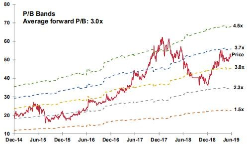 彭博及招银国际证券对美的集团的市盈率和市净率预测区间: