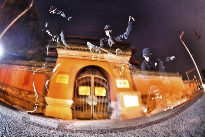 社会的滑手们全都住在这里。队里有一台摄像机,索尼VX1000,搭配鱼眼镜头是拍摄滑板的经典组合。凡好天气,大家就蹬着板,大街小巷满北京流窜,寻找地形做招,拍摄视频。晚上回来一块儿看素材,讨论动作,也讨论拍摄方法。一整年的素材攒下来,年终混剪出一条集锦。Raph会专门创作新的音乐来搭配视频。几乎没有其他滑板视频像社会的这样,具有原创性且风格强烈。每到年末,很多人就开始期待社会的年度视频。