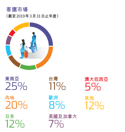 如上图所示,香港的客运市场也是亚太地区中最国际化的航空市场之一,并不只依赖单一地区的客源进行发展,而是进行了多元化的客源发展渠道拓展。