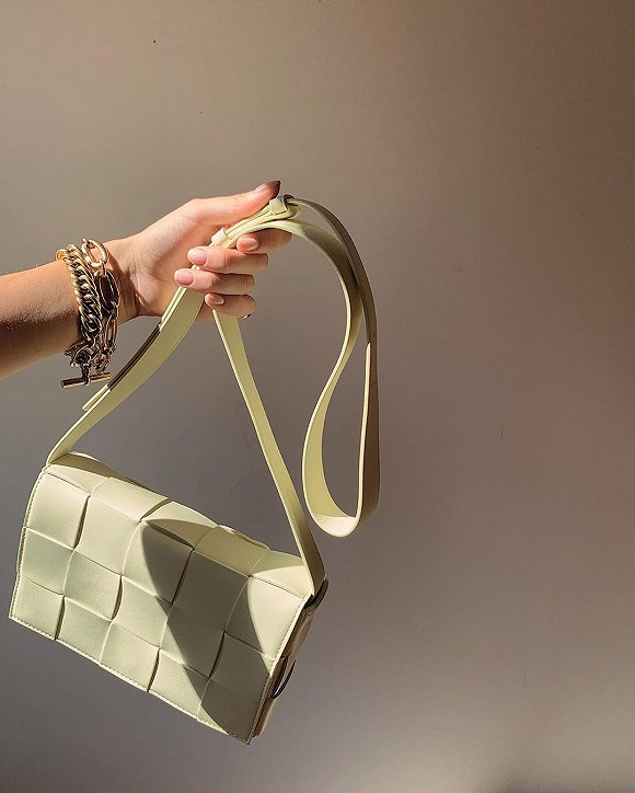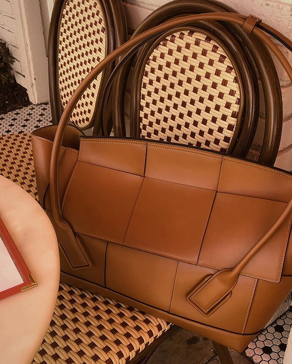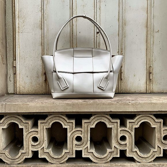 The Arco肩背包的设计灵感来源于米兰市中心采用新古典主义风格建筑的和平之门Arco della Pace。Daniel Lee将以往细致编排的intrecciato纹路放大,让它在包袋外观上勾勒出立体棋盘格纹般的嶙峋美感,并采用圆弧形包盖来消弭方正线条的严肃感,设计语言十分丰富。