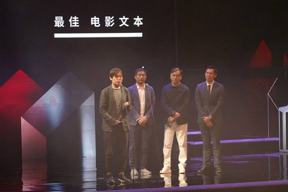 述平(左二)作为颁奖嘉宾之一,给《平原上的夏洛克》导演颁发第13届FIRST青年影展最佳文本奖