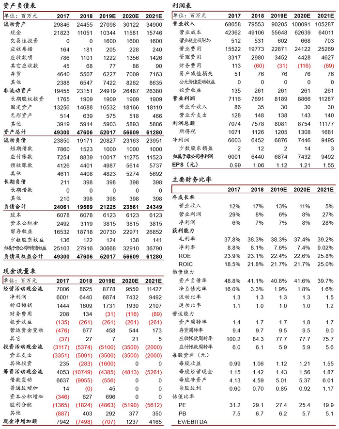 股权激励落地,锚定长期发展,维持“强烈推荐-A”投资评级。公司激励方案落地,扩大激励对象,绑定核心骨干,通过优秀机制不断强化自身核心竞争力,五年维度力争50%的扣非业绩成长空间。我们略调整19-21年EPS1.12、1.21、1.55(相对前次,只调整了激励费用摊销对应的业绩部分),对应增速7%、8%、28%,给予20年28XPE,维持35元目标价,维持“强烈推荐-A”评级。