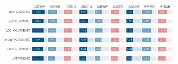 从本次调查中,也可以看到不同行业、不同性质、不同规模的企业对中基层管理者的胜任力素质评估。