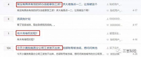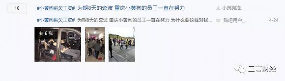 4月中旬,百度小黄狗贴吧出现大量员工讨薪信息。此后不久,据猎云网报道,小黄狗受团贷网事件影响,资金被冻结、多地停运,4000多名员工被迫离职。