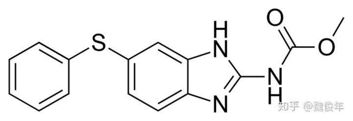 很有意思,其核心结构和“狗药”芬苯达唑非常相似,仅在左侧取代基有区别。