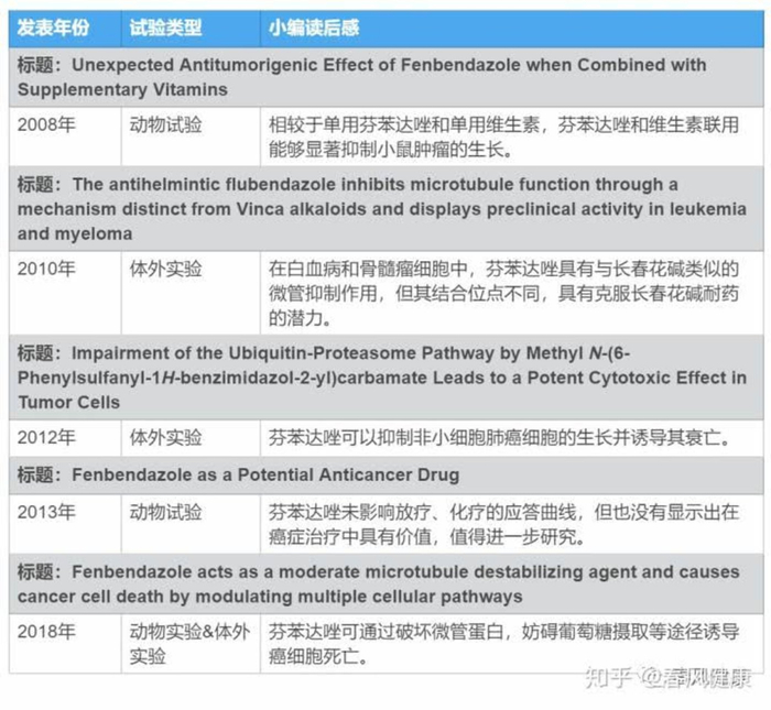 将话题回归到“狗药”芬苯达唑。芬苯达唑是一种广谱苯并咪唑驱虫剂,用于对抗胃肠道寄生虫,包括贾第虫,蛔虫,钩虫,鞭虫。关于芬苯达唑对癌症的影响,有两篇研究论文得出了相反的结论。