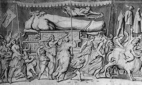 图六。让-弗雷德里克·马克西·迪·瓦尔德克(Jean-FrédéricMaximilien de Waldeck)对马坎托尼奥·雷蒙迪《姿势》的复原,1850年 图片来源:伦敦大英博物馆
