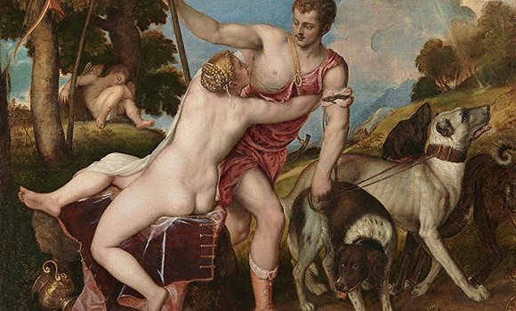 图四。《维纳斯和阿多尼斯》是意大利画家提香·韦切利奥于1553年-1554年间创作的油画作品,现藏于马德里普拉多博物馆 图片来源:Wikimedia