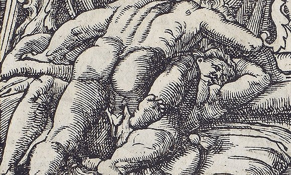 图二。无名艺术家临摹的马坎托尼奥·雷蒙迪《姿势》,又名《十六享乐》“托斯卡尼尼卷”(Toscanini volume)副本,1555年 图片来源:私人收藏,米兰