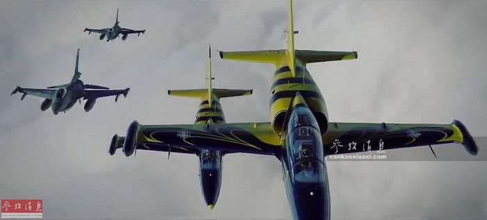 除普通的空中巡逻任务外,波兰F-16部队还要负责波罗的海上空的飞行器(民航机)识别任务。图为波兰F-16战机与拉脱维亚“波罗的海蜜蜂”表演队的L-39教练机在波罗的海上空编队飞行。