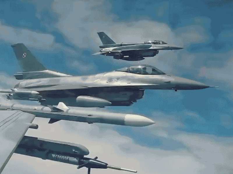 波兰空军F-16部队在波罗的海地区空中巡航动态图。