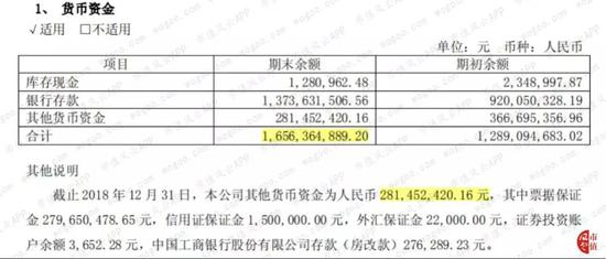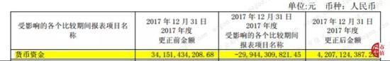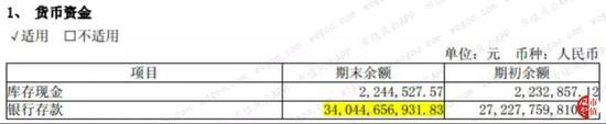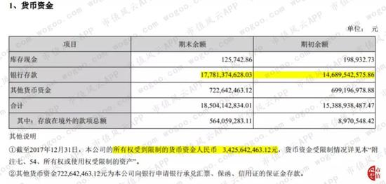 而在2017年年报中,货币资金余额为341.51亿元,其中银行存款余额高达340.45亿元。