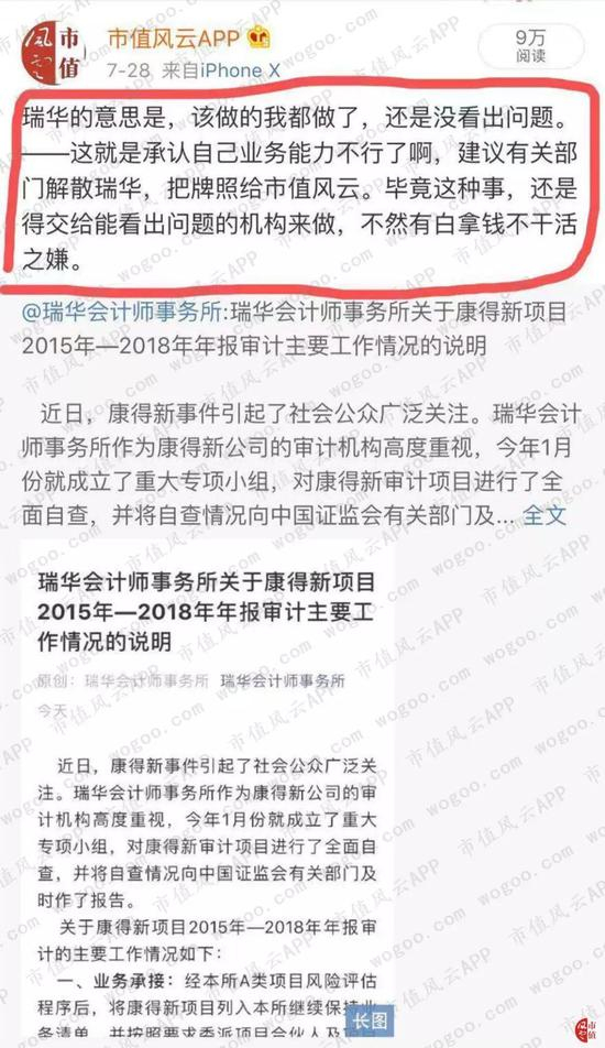 2019年7月28日,瑞华会计师事务所在其官方网站上公布《瑞华会计师事务所关于康得新项目2015年—2018年年报审计主要工作情况的说明》,初略总结一下其观点,就是: