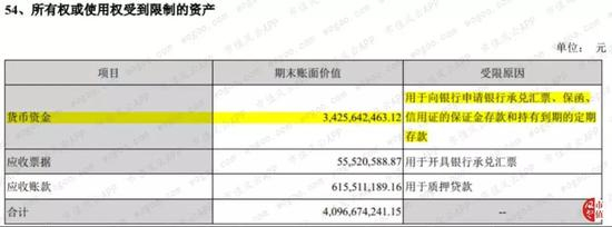 所有权受到限制的的资金金额为34.26亿元,且均为保证金存款和定期存款。