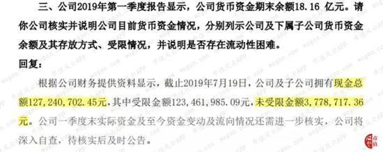 根据2019年7月25日披露的上交所问询函回复公告,辅仁药业拥有的不受限资金仅为377.87万元。资金动向与年报存在较大差异。