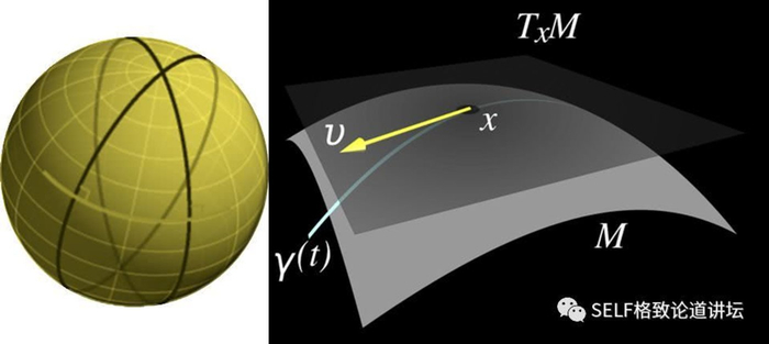 想象你是一只蚂蚁,位于图中黑色的小圈里,你其实无法区分你究竟是在上方的平面上,还是在下方的曲面上,这有点类似我们身处地球,却不知道地球是圆的。