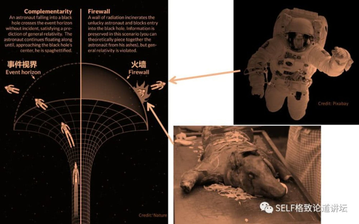 有量子力学专家认为断交的结果是在事件视界附近形成了一个充斥着极高能量粒子的区域——火墙。