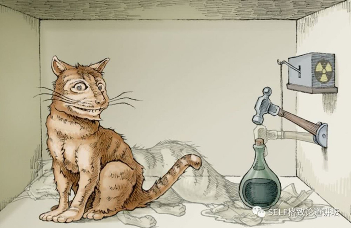 在这个实验里,这只猫处于既生又死的状态,量子力学会告诉你它生的概率是多少,死的概率是多少。