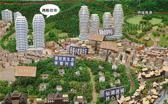 其中,大一期围绕仙湖迷城核心风景区,形成滇濮名族文化和多个滇中民俗风情区,规划建筑用地面积1748亩,由位于整个项目核心区的仙湖迷城景区、西面西林寺山与西林寺组成的禅意养心区,以及南面的湿地景观区组成。