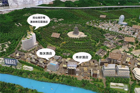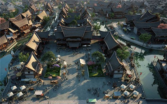 景观方面,大一期未来将呈现“四象五街十六坊”的景致格局。其中,“四象”包括抚海湾景区为核心的“仙湖月夜”、蓝莓山为核心的“湖山胜景”、仙湖迷城核心区“古城迷踪”以及其水景街区构成的“曲水流觞”。