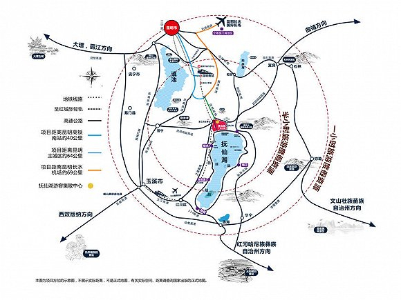 项目距离昆明高铁南站约44公里,距离长水国际机场约70公里。目前项目通过绕城高速、呈澄高速、澄川高速、澄华高速以及澄川线-环湖公路等道路,与昆明、玉溪、曲靖、楚雄等滇中主要城市连通。