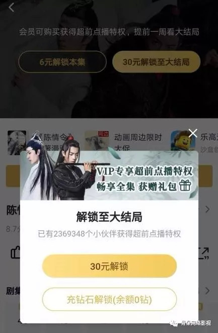 这些二次付费的观众被腾讯视频亲切地称为“小伙伴”,也顺势暴露了腾讯视频此番操作的收益:或超7500万。目前,《陈情令》的超前点播页面上已不再显示具体的解锁人数。