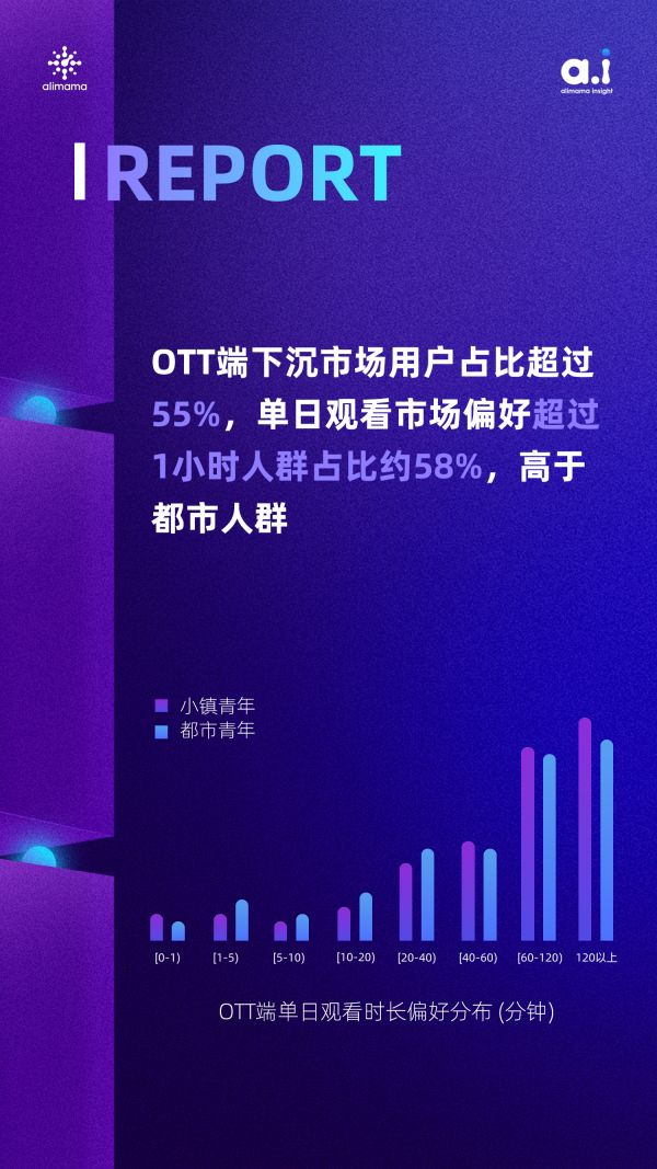 我们也看到,随着内容的丰富和消费者浏览深度不断提升,淘宝已经从购物渠道转变为消费者情绪和生活场景的晴雨表。此外,OTT端下沉市场用户占比超过55%,单日观看时长高于都市人群。