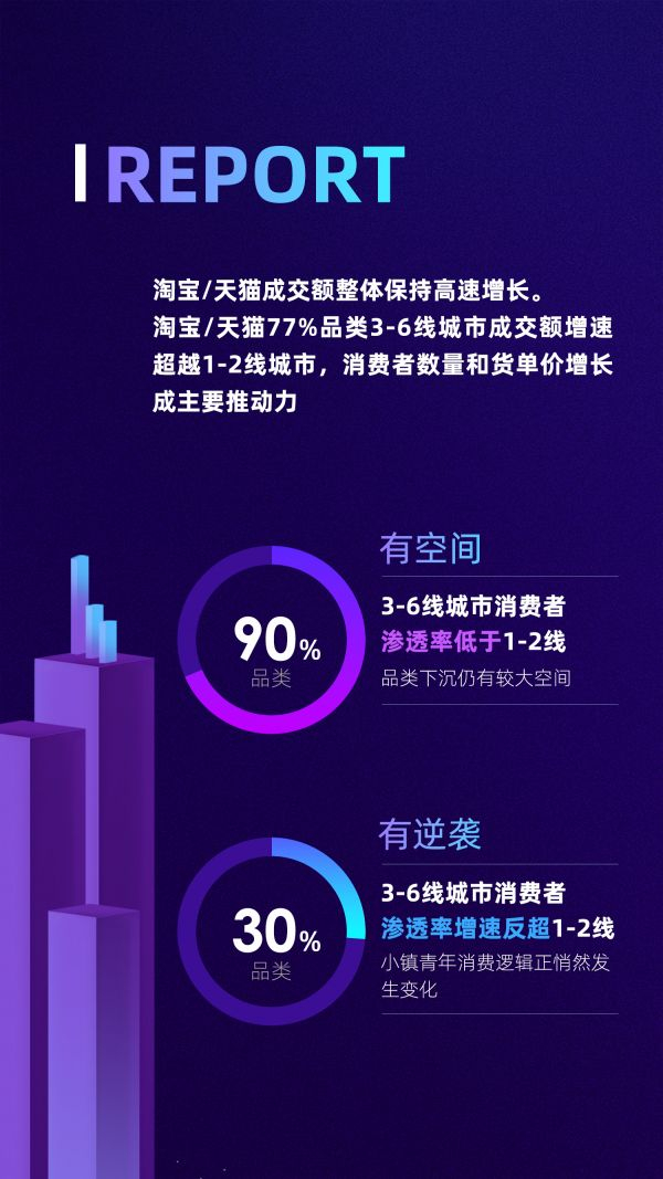 《报告》便通过分析线上生意大势,洞察到“下沉市场”这一市场蕴藏的机遇。移动互联网及快递运输网络的普及,打破了以往下沉市场的渠道垄断,将下沉市场的消费力通过电商的形式释放出来。