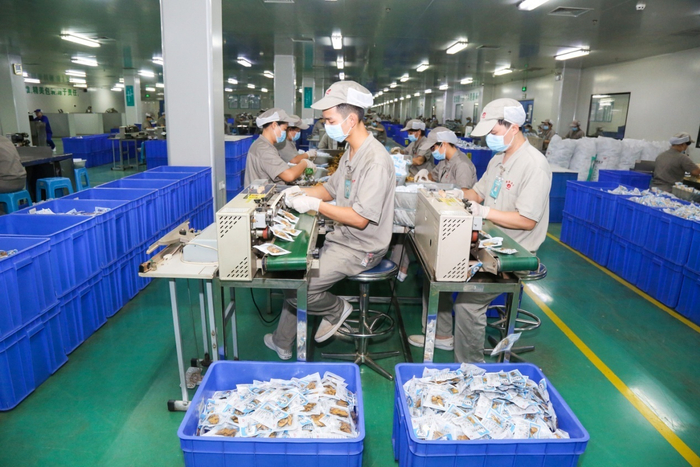 不仅如此,截至2018年底,车间半自动化包装设备已经全部更新为全自动包装设备。在车间内更是随处可见工作人员操作专业设备进行生产,机器运作和工人们忙碌的身影交织出一副热火朝天的工作场景。这不仅解放了劳动力,也大大提高了生产的效率,实现了高质、高量发展。