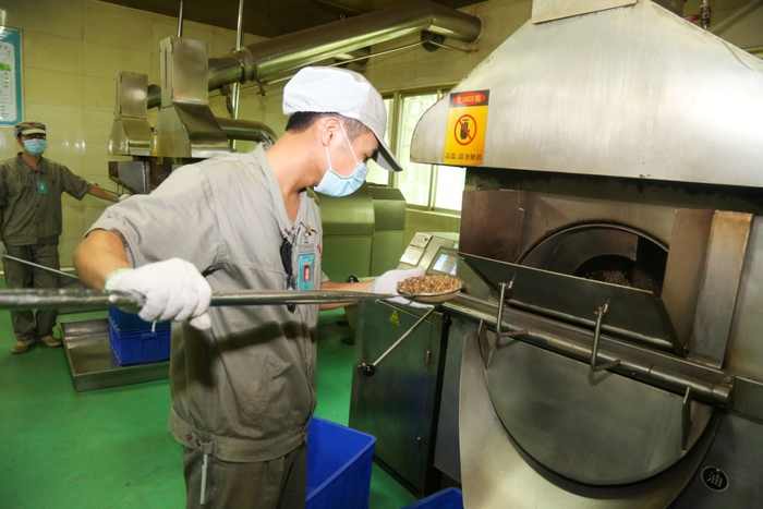 车间里的工匠们统一穿着工作制服,戴着工作帽、口罩和手套,严格遵循车间生产的标准和规范进行操作和生产。正是在他们手中,来自不同地方不同品种的中药材们历经“九九八十一关”后完成华丽蜕变,变身为质量精美的中药饮片。在这里生产的小包装中药饮片,不仅变革了饮片传统包装模式,而且实现了智能化和机械化地生产。