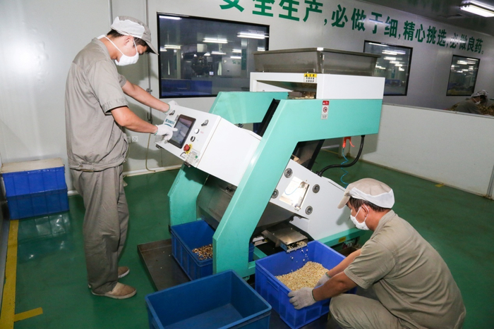 生产工对加工后的药材进行人工挑拣、筛选和修整,分离非药用部位等