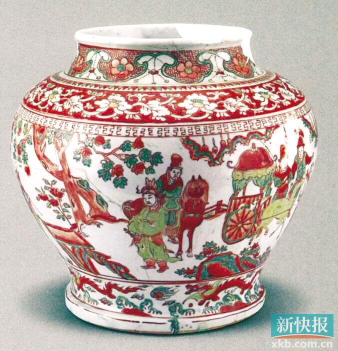 红绿彩三顾茅庐图器物出现于明代晚期,以现藏于长治市博物馆的这件明正德至嘉靖时期红绿彩三顾茅庐图大罐最具代表性。