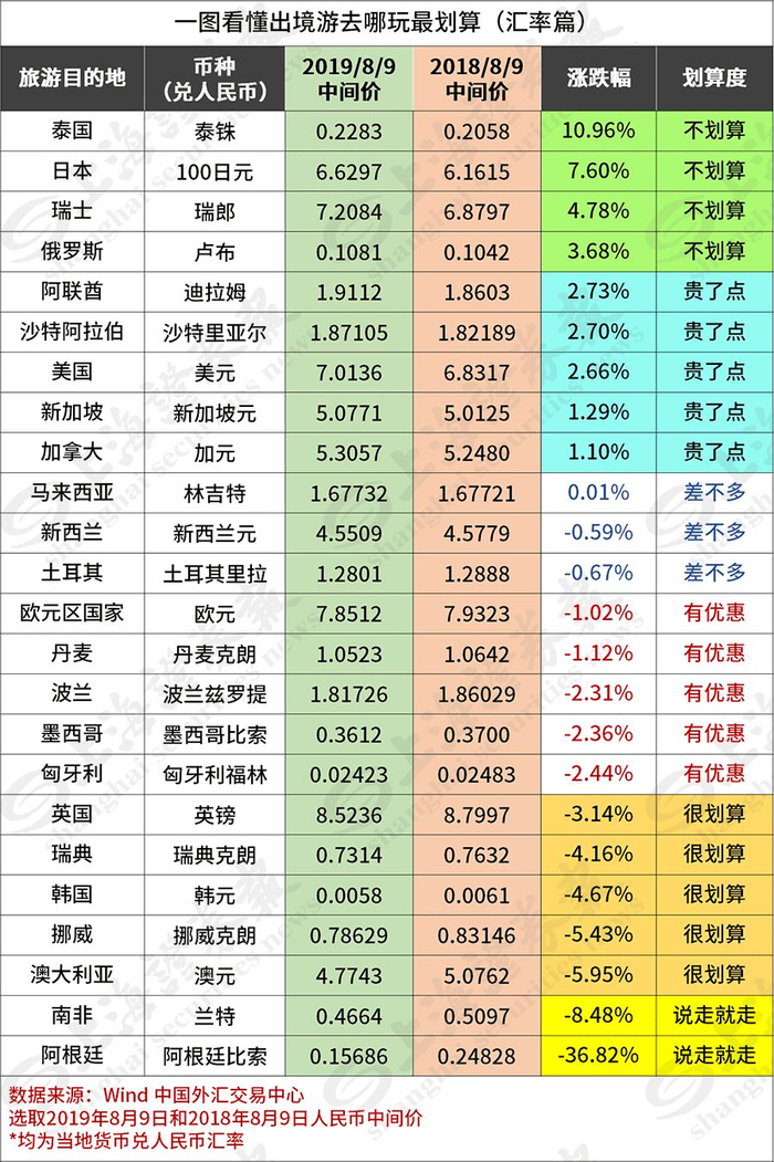 人民币破7就不敢出境游了?一图看懂去哪玩最划算!